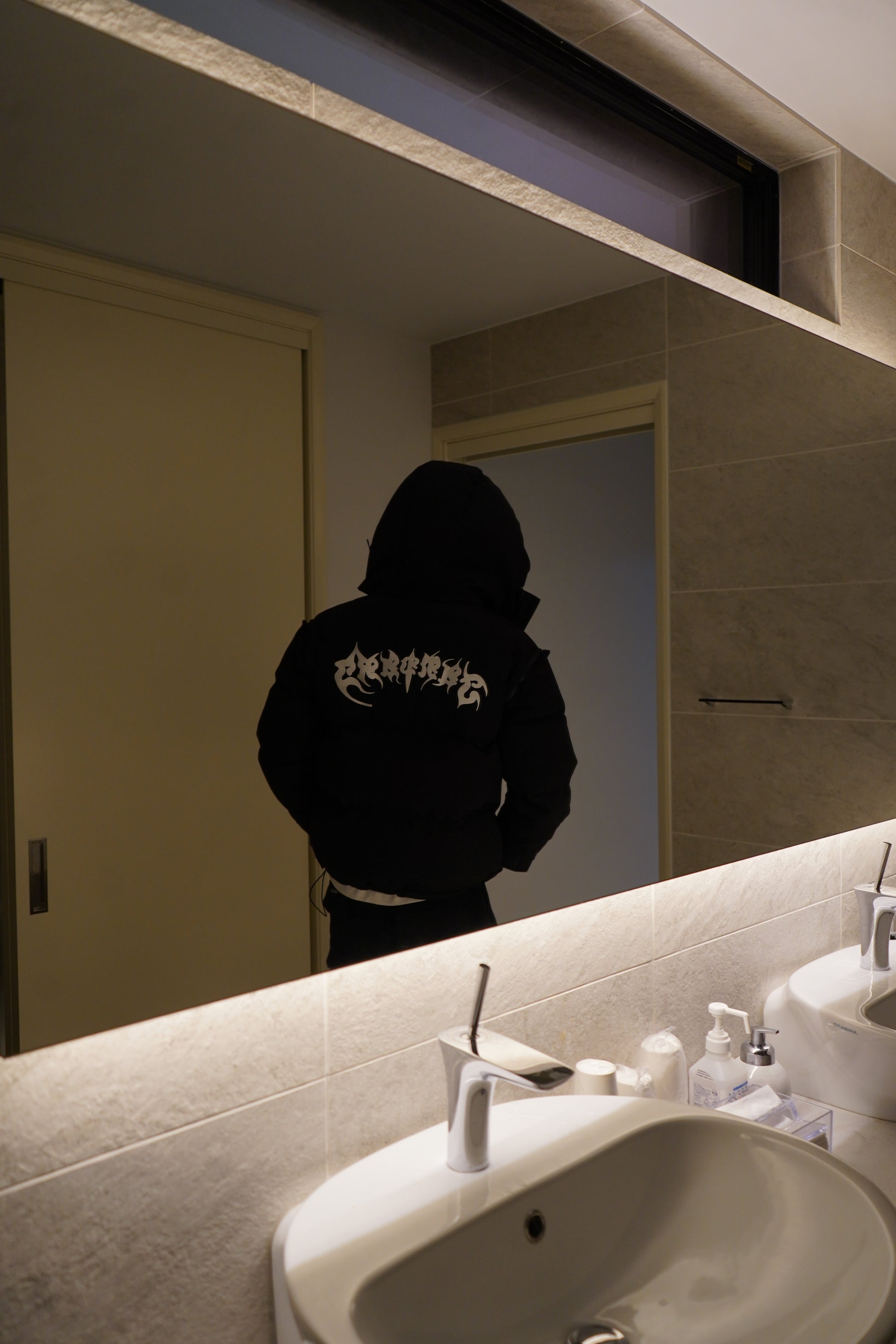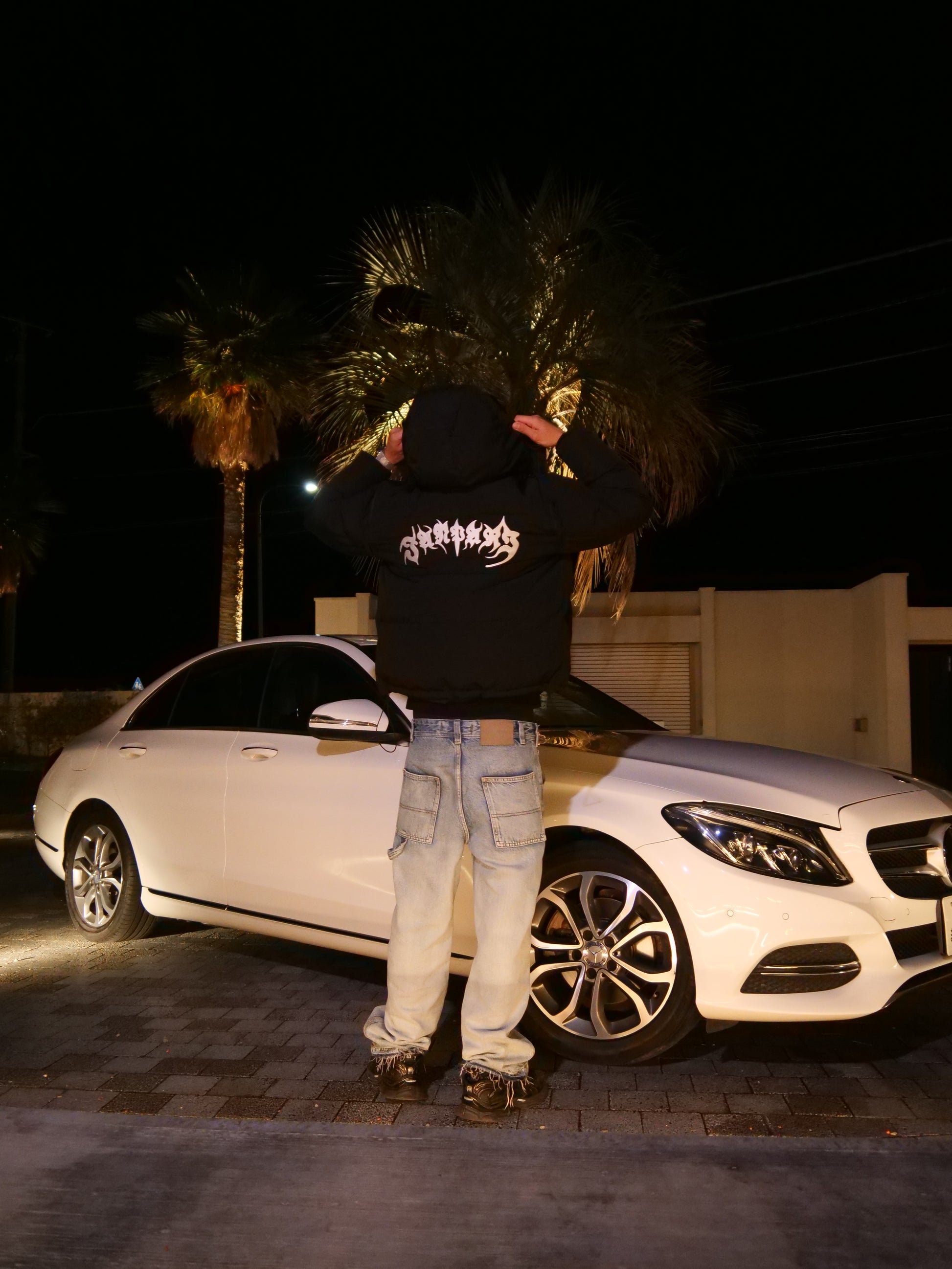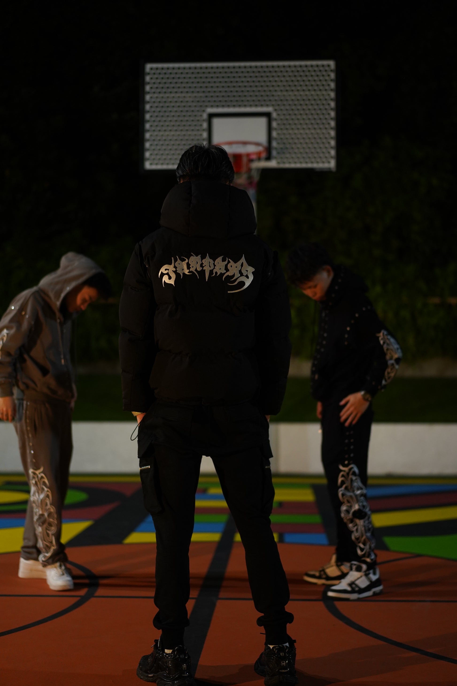 フロントとバックにJANPARIロゴ刺繍を施したオリジナルダウンジャケット。