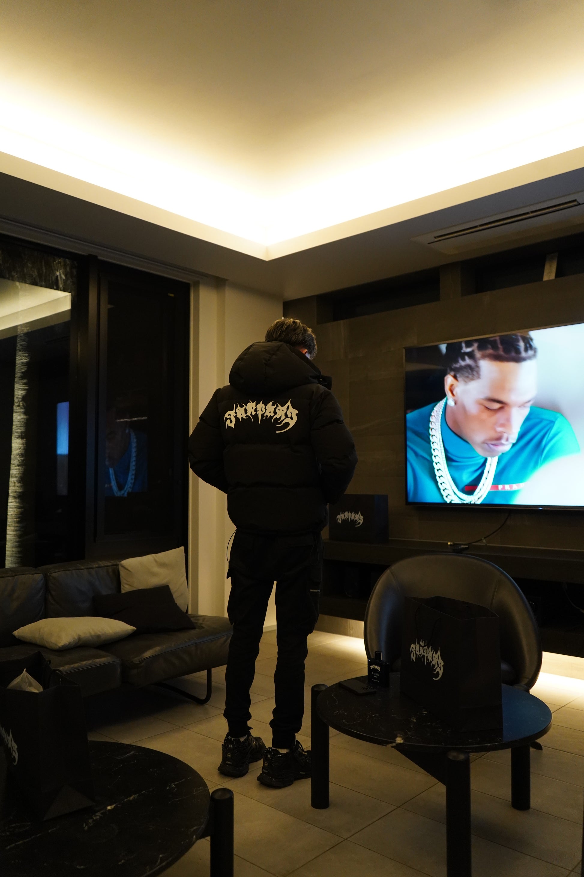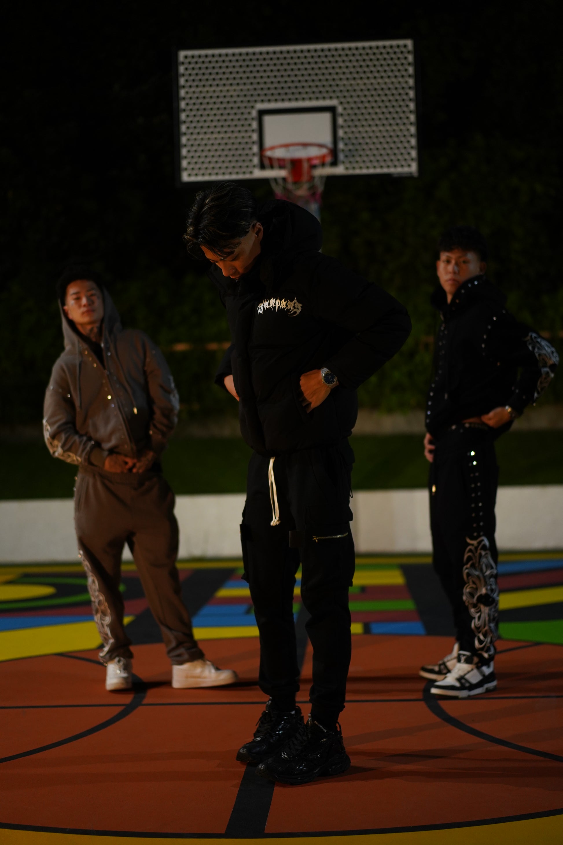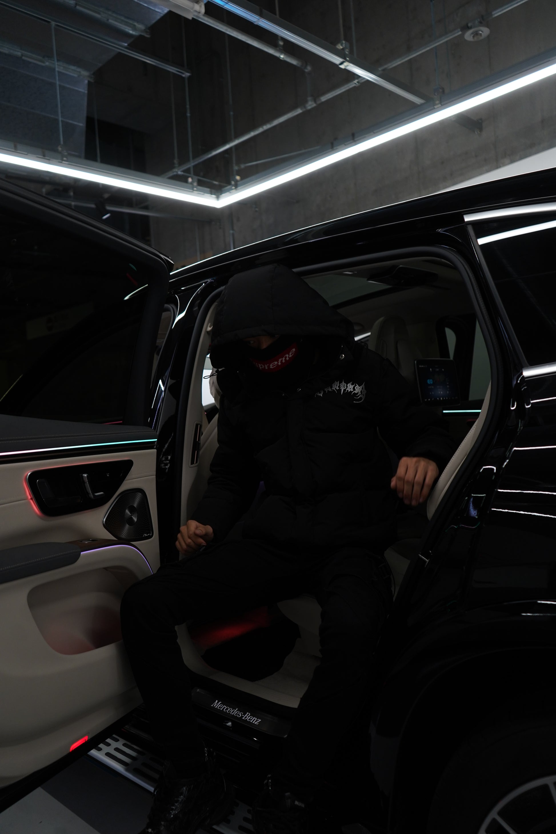 フロントとバックにJANPARIロゴ刺繍を施したオリジナルダウンジャケット。
