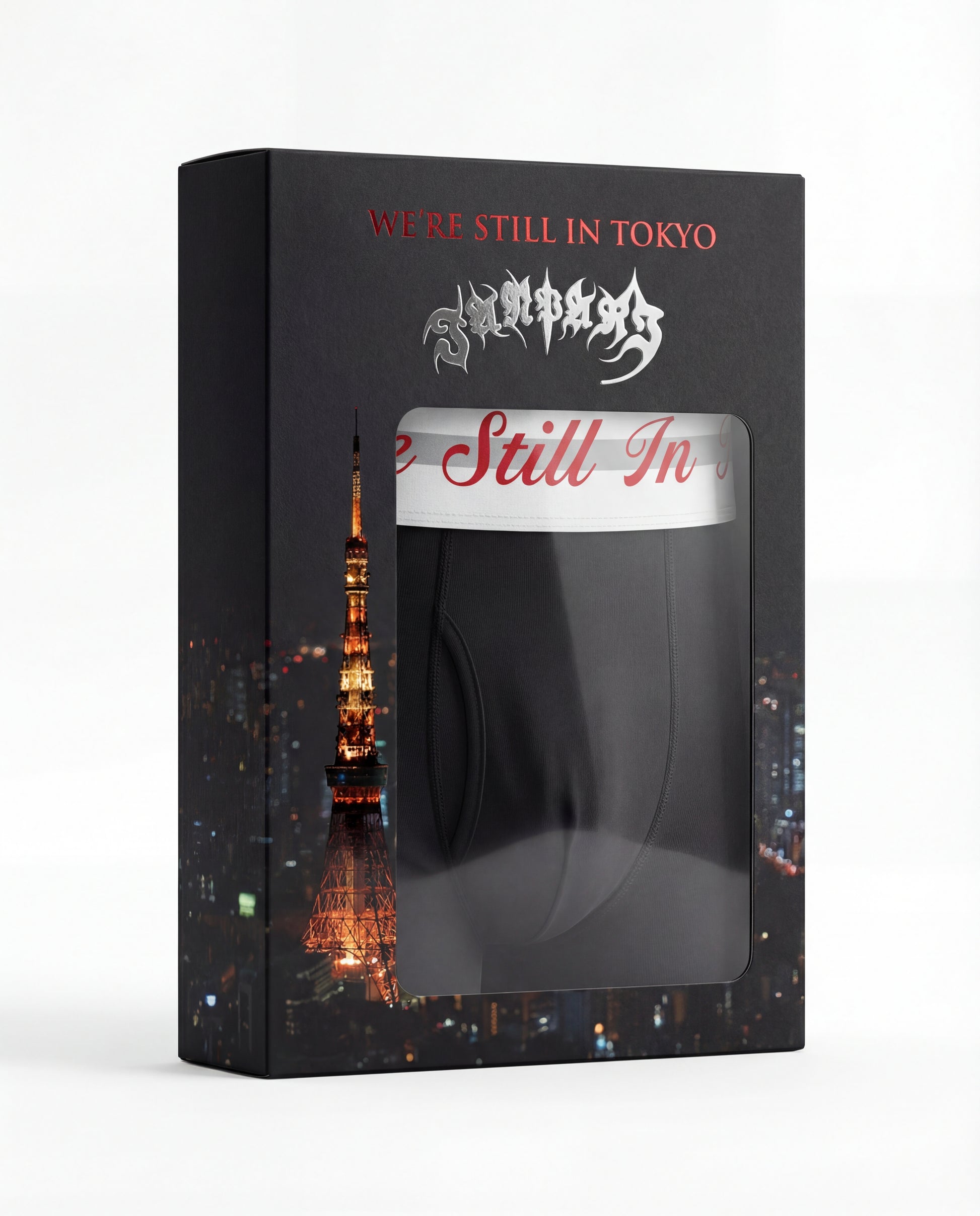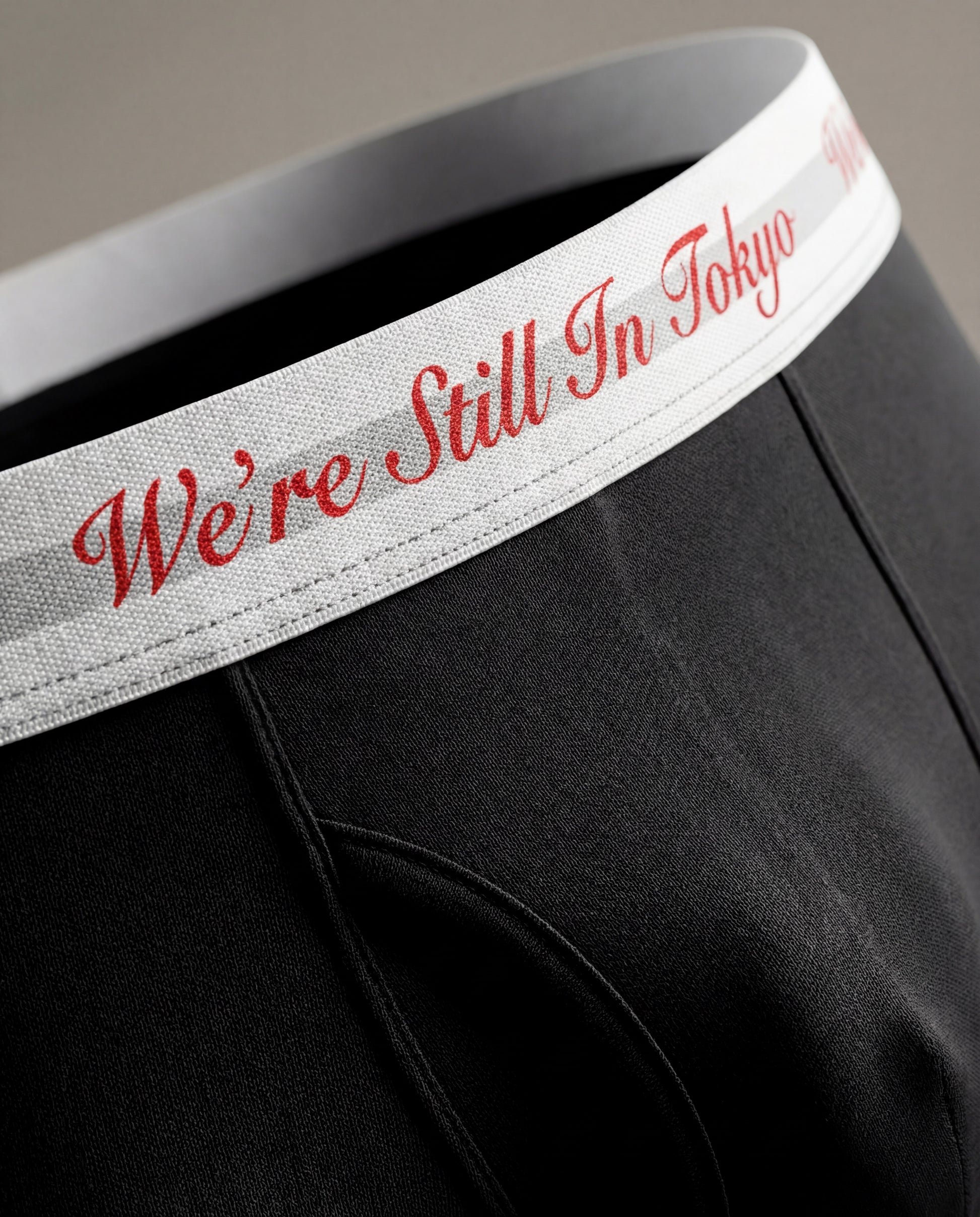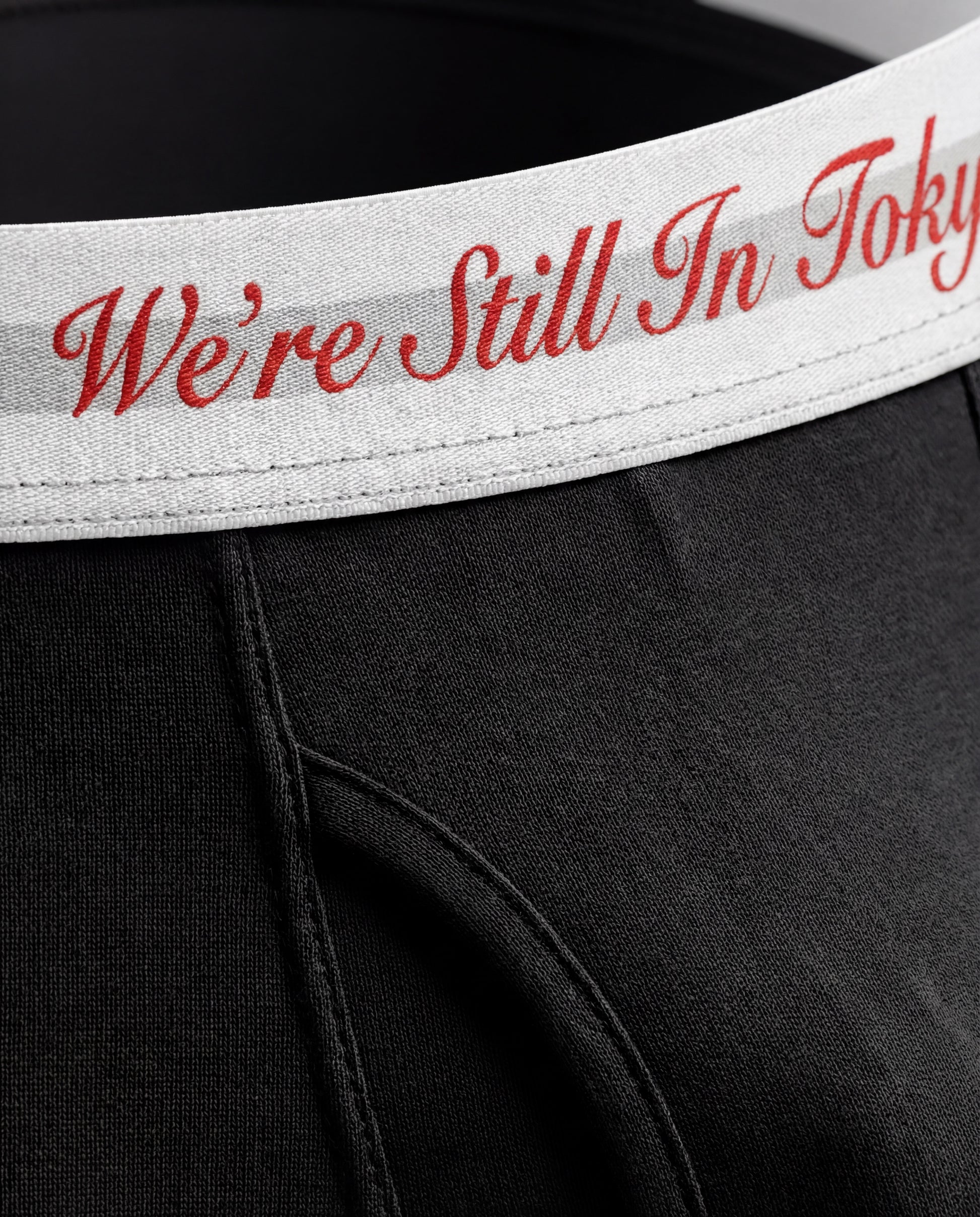 ウエストバンドに “We’re Still In Tokyo” ロゴを編み込んだアンダーウェア。